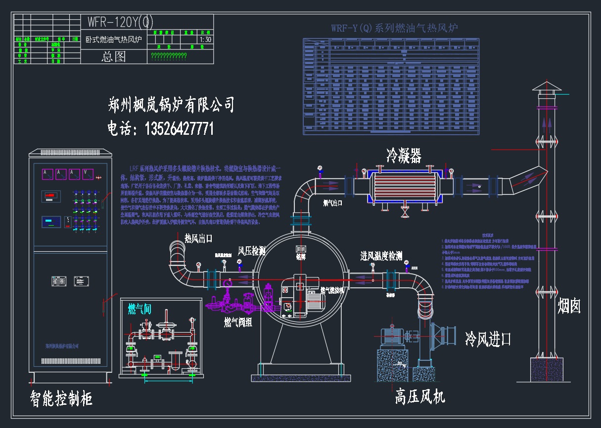 Hot-blast boiler control cabinet adopts fully automatic control system, this system has strong artificial intelligence, the boiler automatic running, can real-time monitor the working condition, real-time and * * of hot-blast boiler intelligent fault diagnosis and treatment, the control system can real-time diagnosis and treatment of the following faults: