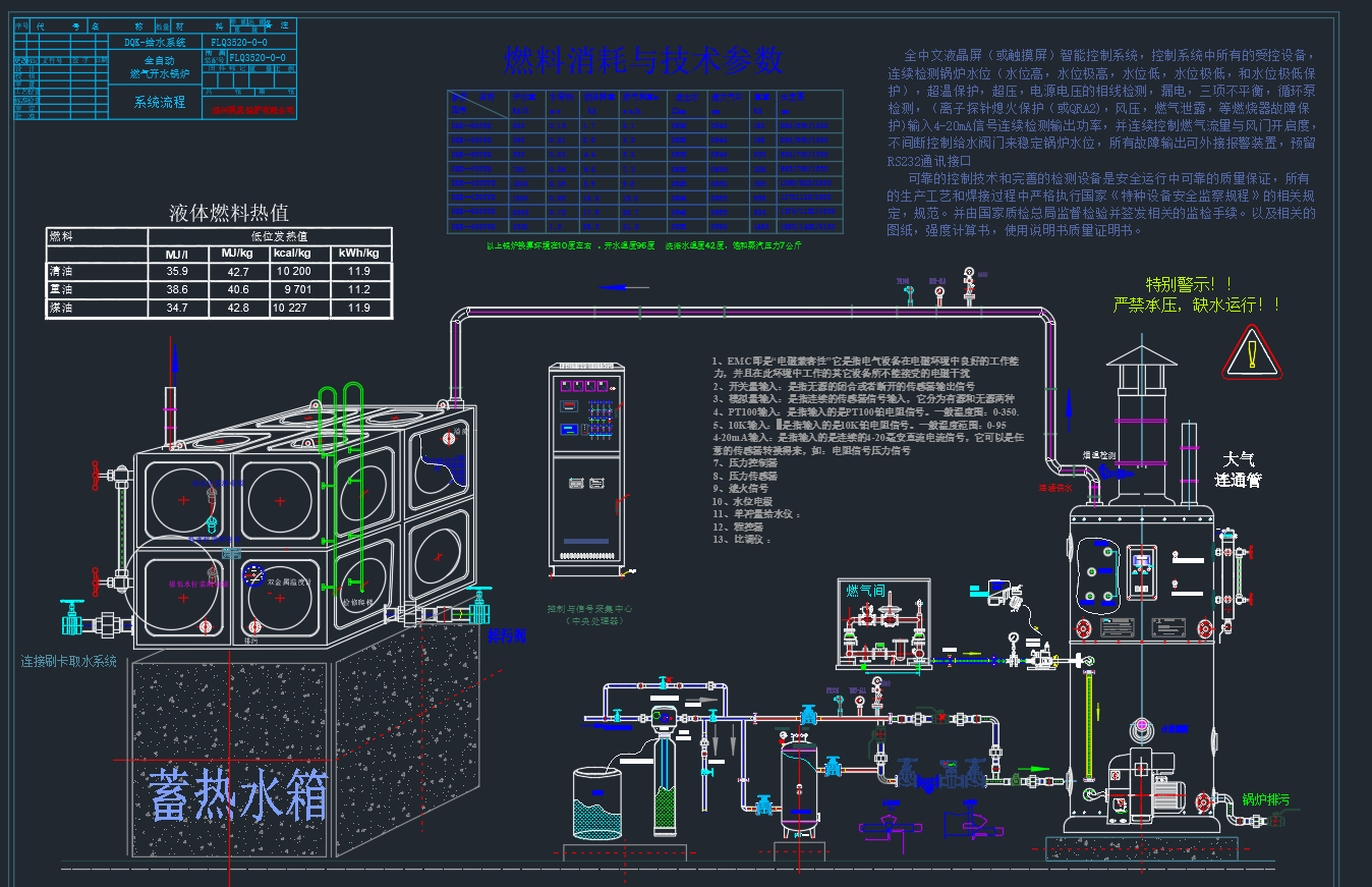 2.6 Safety control: Boiler over-temperature and over-pressure protection, boiler water level over-limit protection, make-up water pump, burner fault, high smoke temperature fault interlock protection;