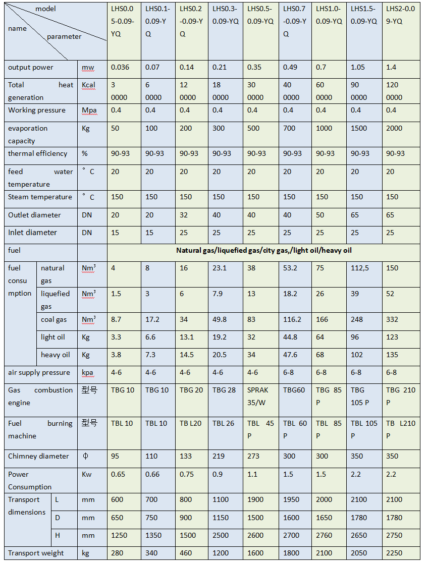 LWS fuel oil (gas) steam boiler, tubeless boiler or shell boiler technical parameters