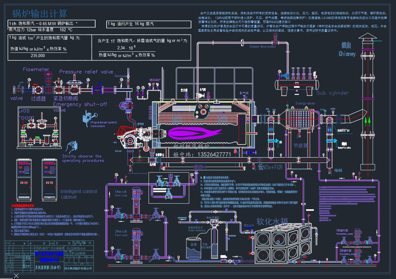 The control system adopts MD204L Chinese LCD screen as the display and operation platform, and Siemens S7-200 series CPU as the information processing and control unit; at the same time, it embeds the industrial control software carefully designed by Fenglan Company and the process structure of the control periphery. The system software not only realizes the general monitoring requirements such as manual/automatic control of gas boilers, working condition monitoring, and real-time trends, but also adds the results of Fenglan Company's careful analysis and research on boiler accidents in recent years, and has rich Fault detection, fault alarm, fault handling and other functions ensure the safe and reliable operation of the boiler. And the standard RS-485 communication interface is reserved to connect with a computer to realize remote monitoring or DCS connection.